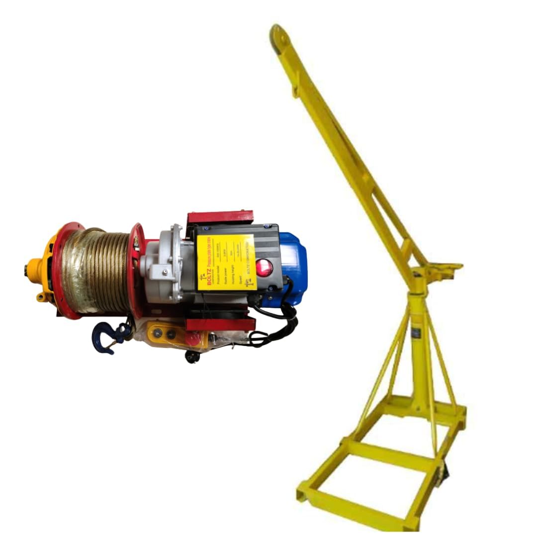 BOLTZ CORPORATION Construction Monkey Crane For Material Lifting 500 Kg With 4Hp Heavy Duty Clutch Winch Motor (8Mm 40 Meter Wire Rope)