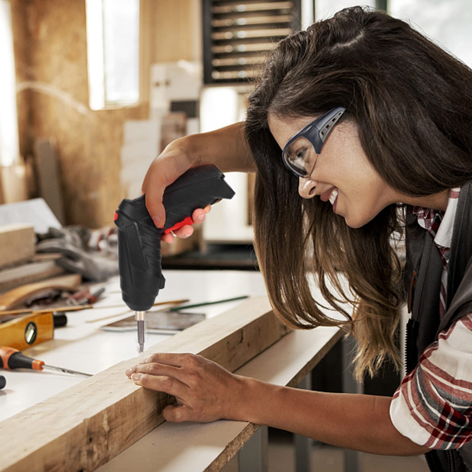 - 【Multifunctional】The cordless electric screwdriver tool is packed in a portable storage case to keep screwdriver and drilling safe. Ideal for furniture installation, drilling, electrical repairs and dead end repairs. You can do jobs like assembling furniture. The perfect gift idea, beautifully packaged. Suitable for men and women, family and friends.
