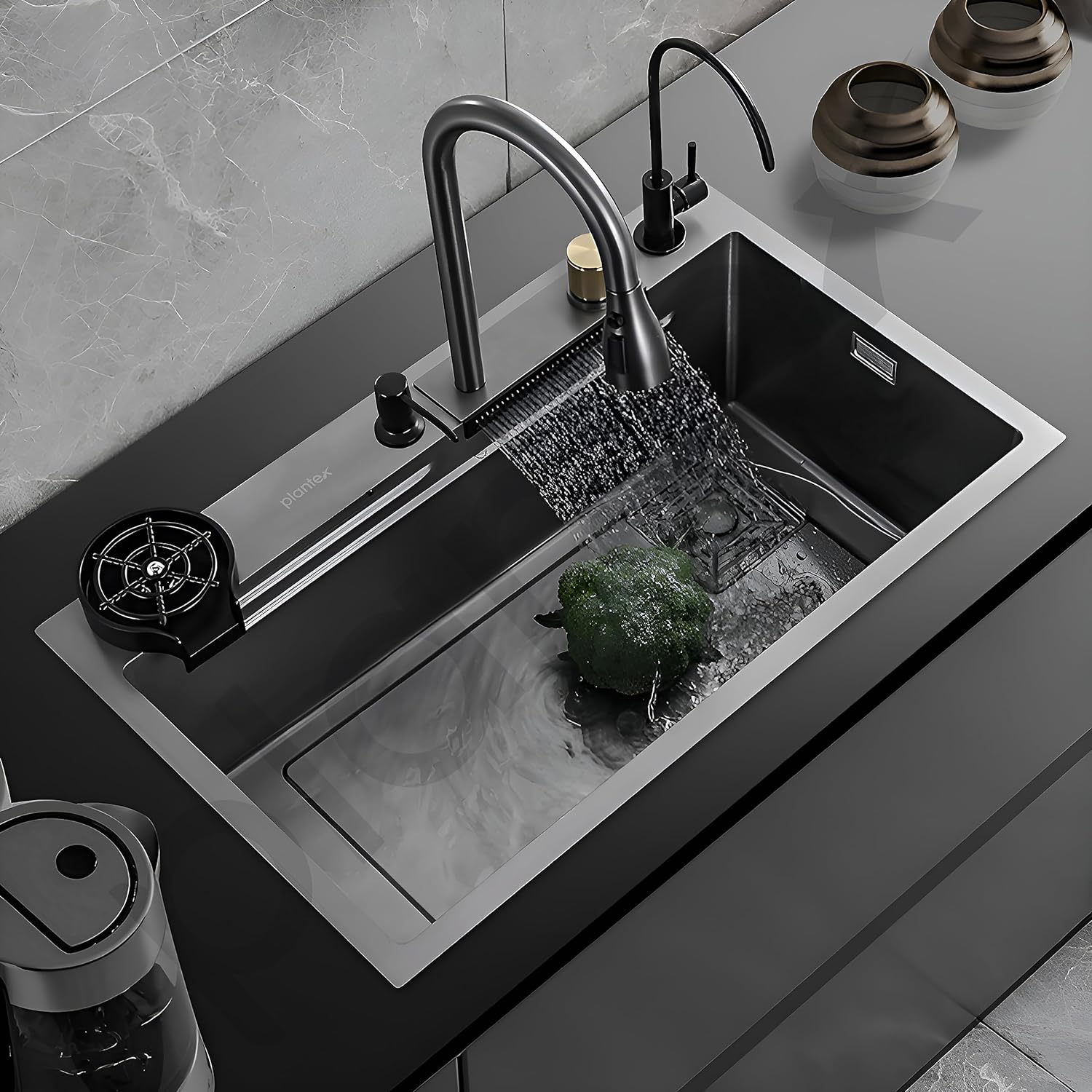 Plantex Fully Equipped Kitchen Sink with Integrated Waterfall and Pull-down Faucets