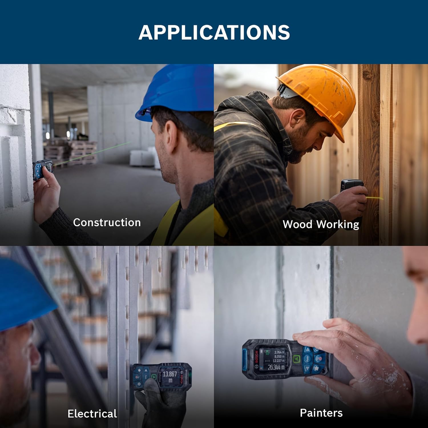 - Ergonomic & Portable: With IP65 dust and splash water protection and ISO certification, the GLM 50-23 G Laser Distance Meter is designed to withstand the toughest job site. The tool is resistant to dust and water, making it reliable in harsh conditions. The shock-absorbing rubber casing adds durability, ensuring it withstands rough handling and tough environments.